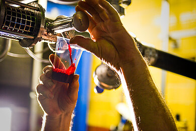 Schließlich mischen sie weitere Zutaten wie Aromastoffe, Zucker und Wasser zu. Bei der Herstellung von Fruchtweinen und Fruchtschaumweinen